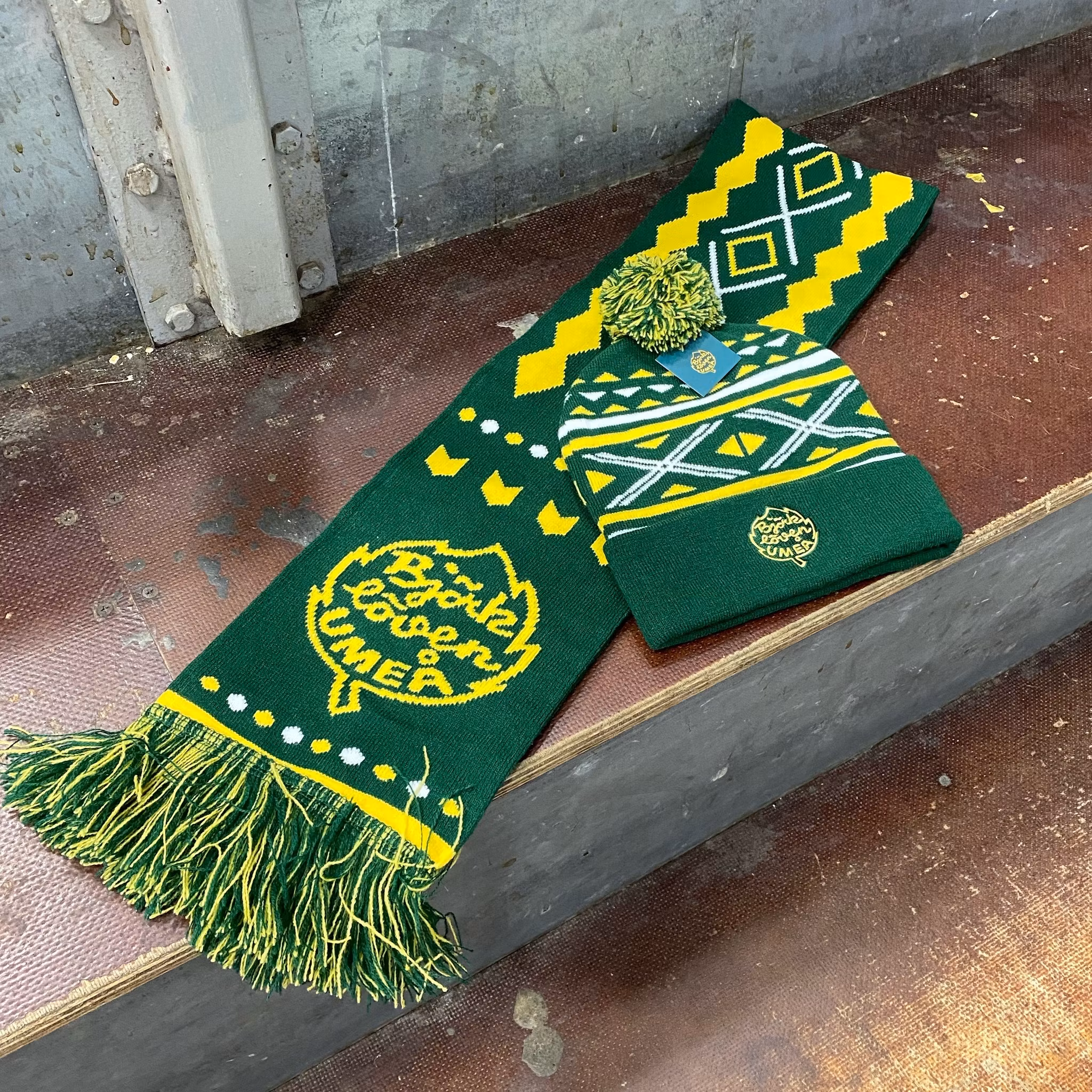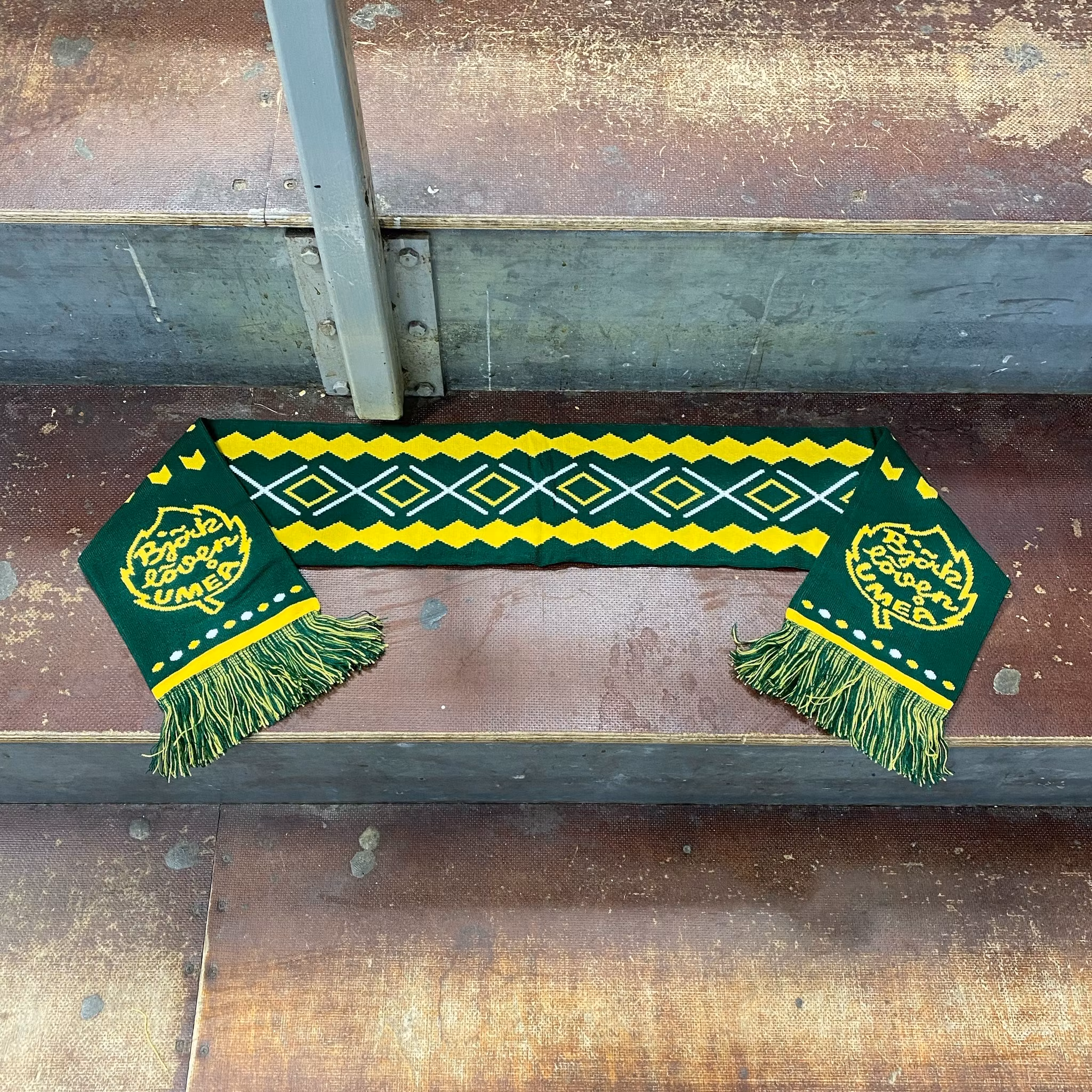 Halsduk som passar både vuxen och barn. Vävd med både text och Björklövenloggan.
