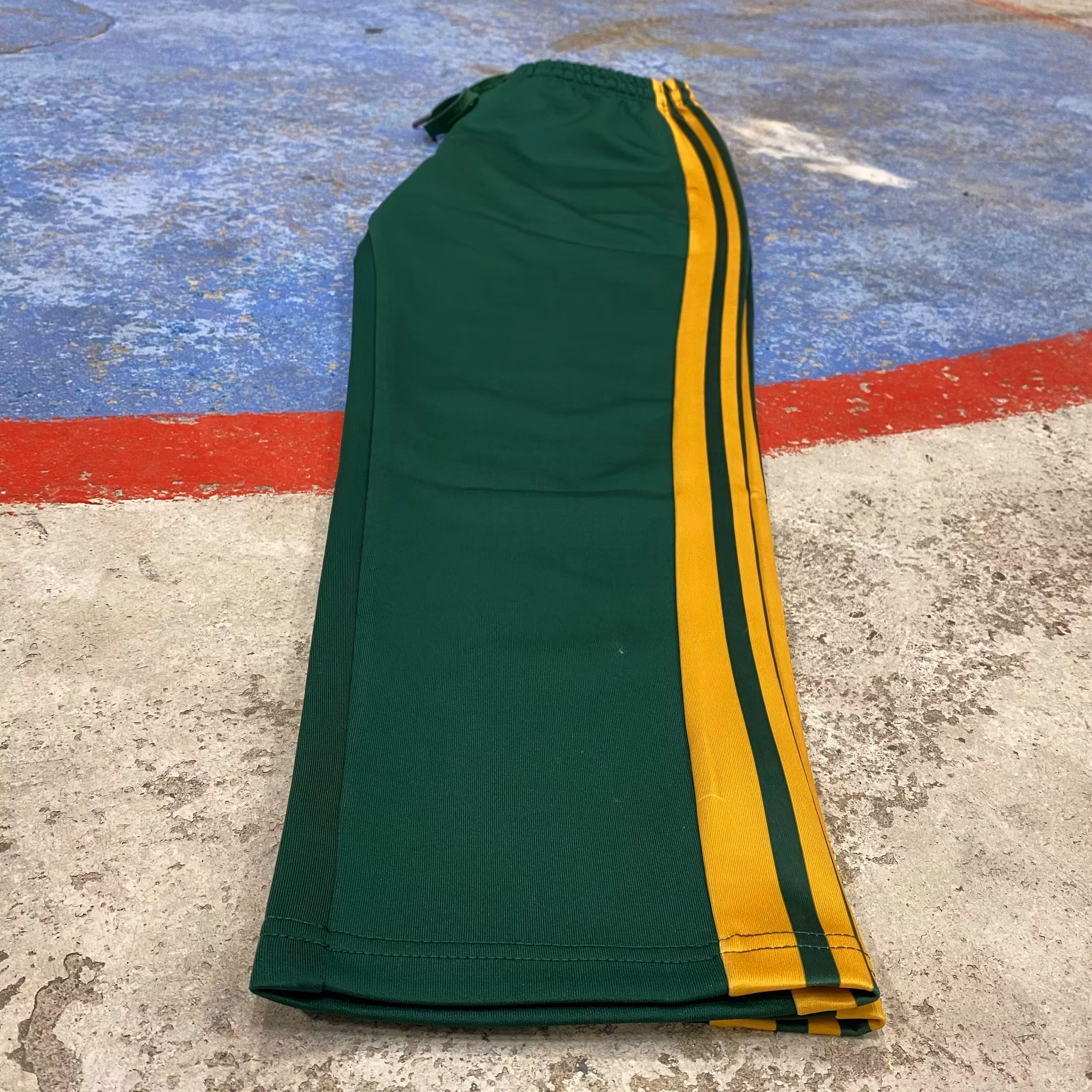 Den här WCT-byxan i grönt och gult är en perfekt blandning av retro och sportigt. Den mjuka, glansiga polyestern ger den klassiska träningsoutfits looken.